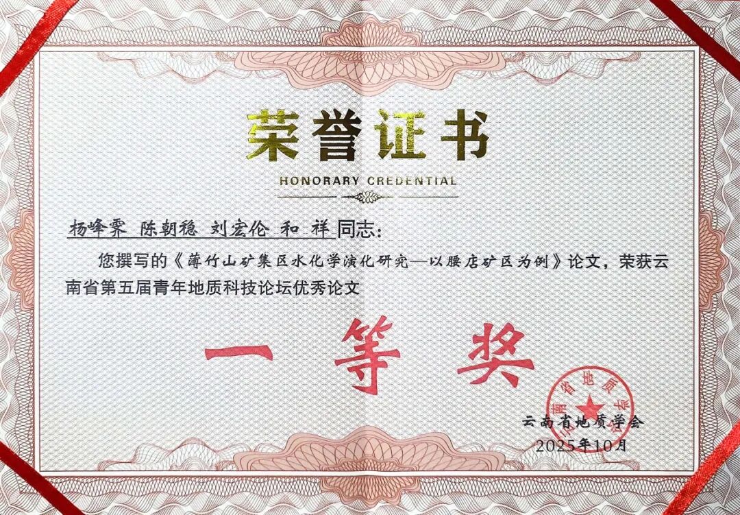 二等奖《滇东北山谷型岩溶矿区水文地球化学成因与演化研究——以永善金沙铅锌磷矿为例》